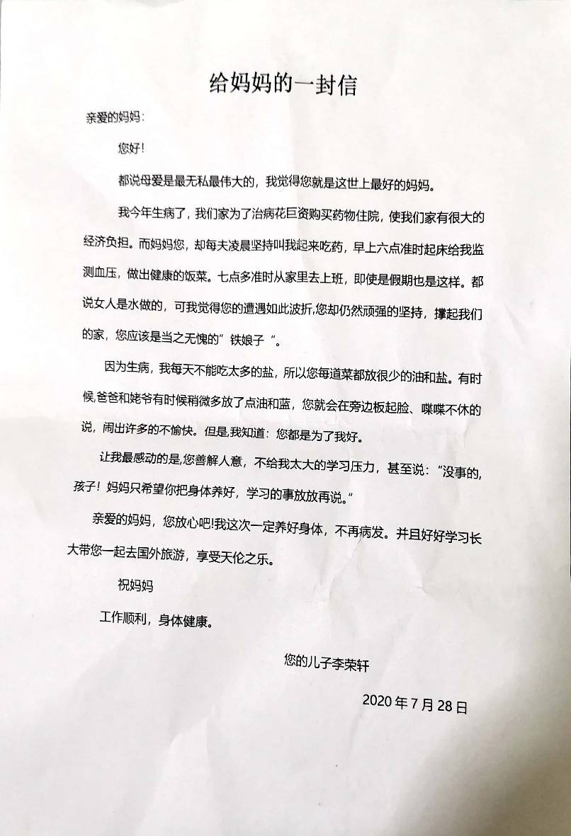 写给妈妈的一封信