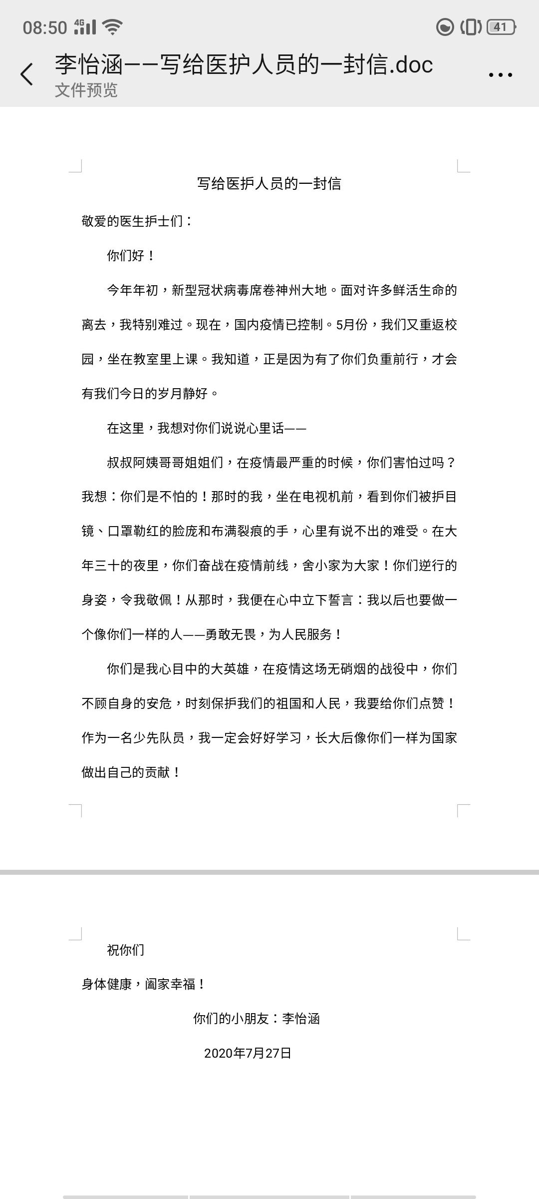 写给医护人员的一封信