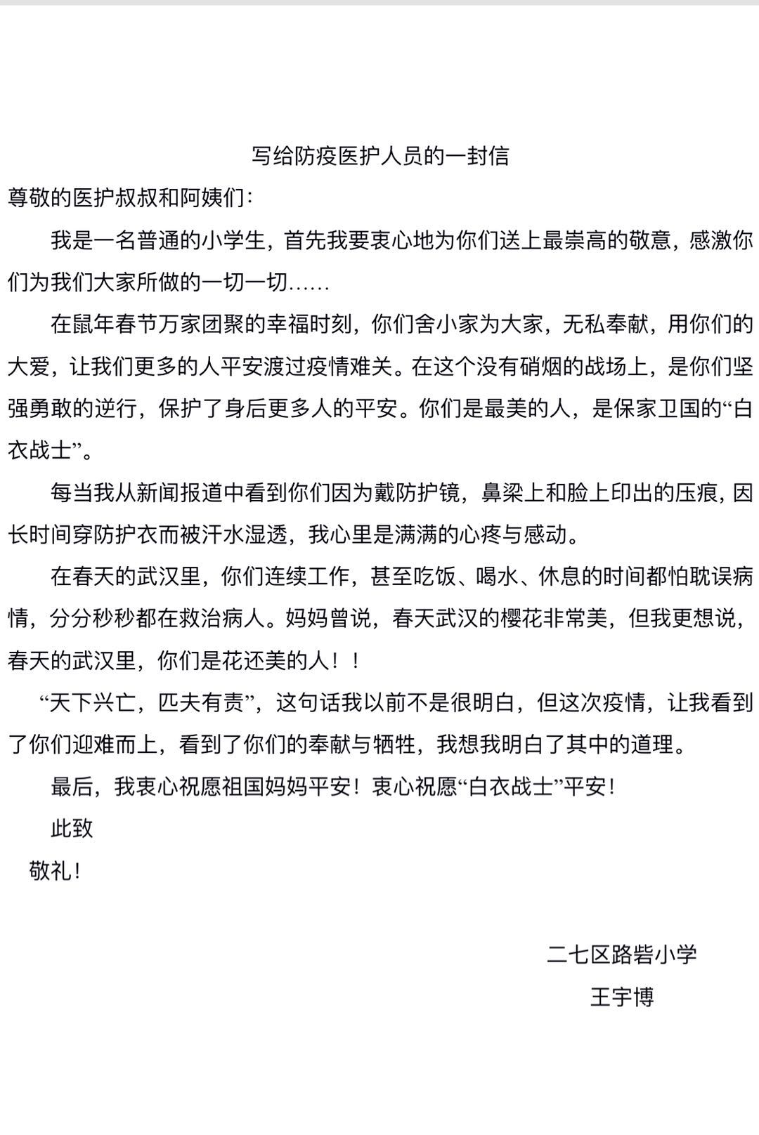 写给防疫医护人员的一封信
