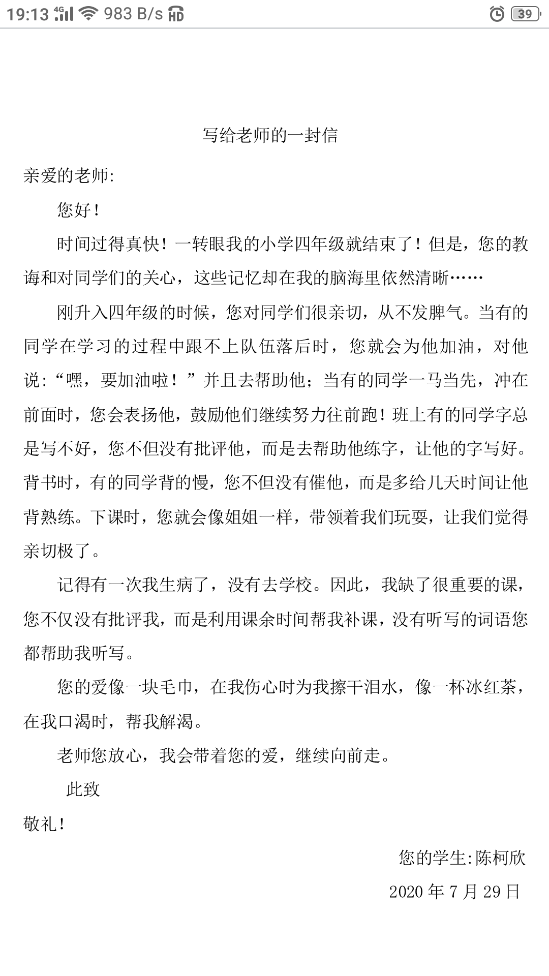 写给老师的一封信