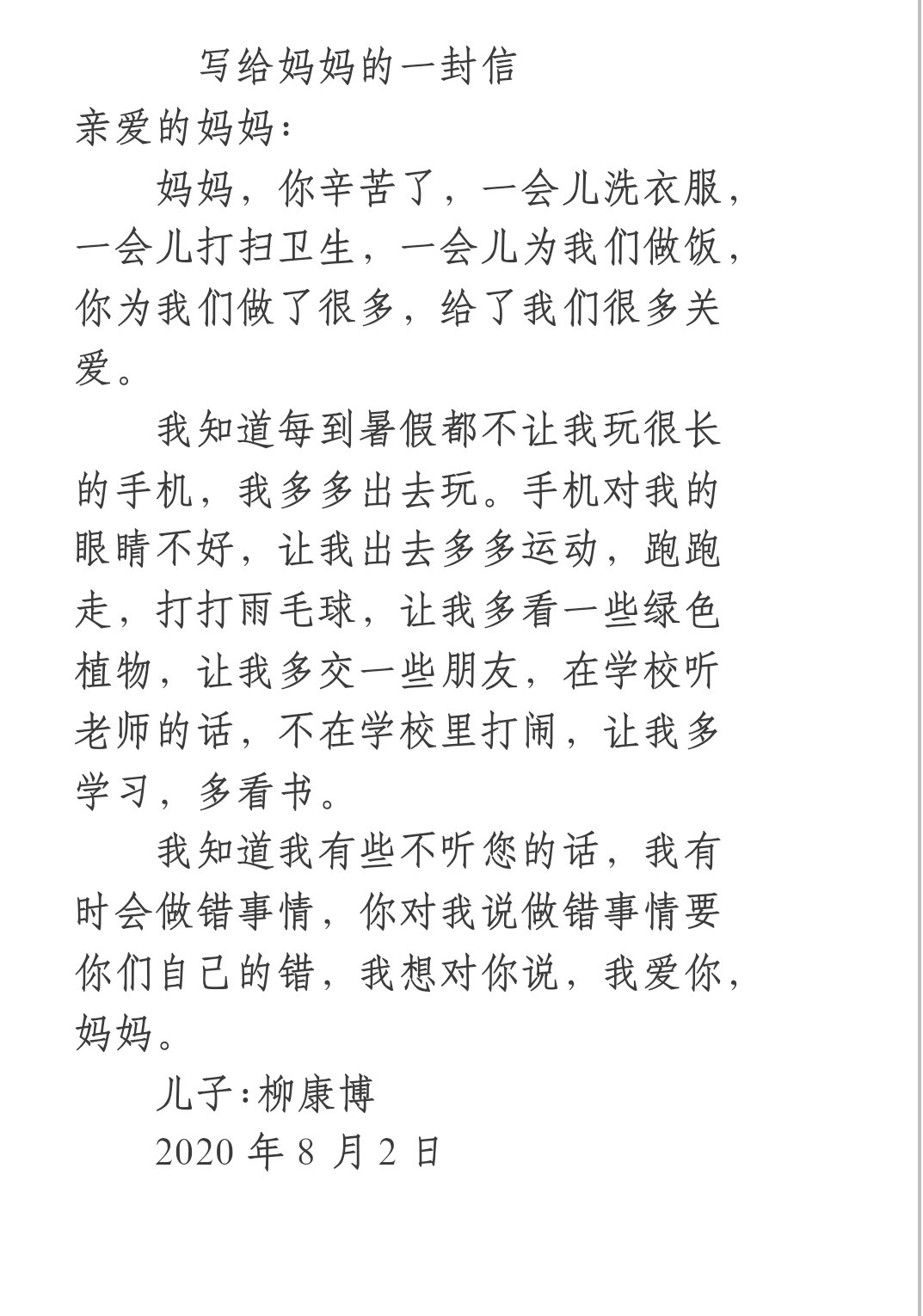 写给妈妈的一封信
