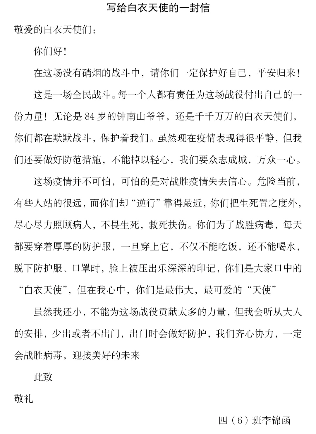 写给白衣天使的一封信