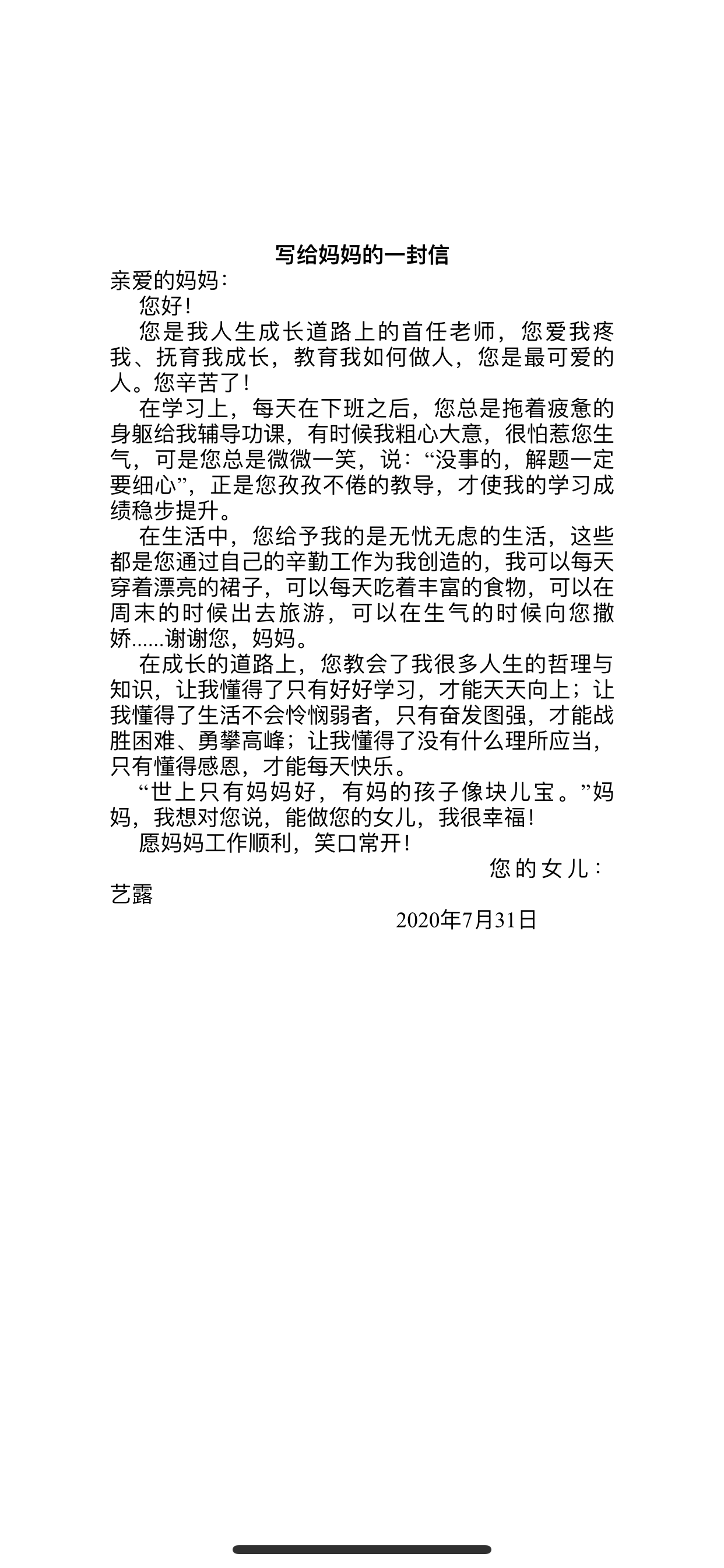 给妈妈的一封信