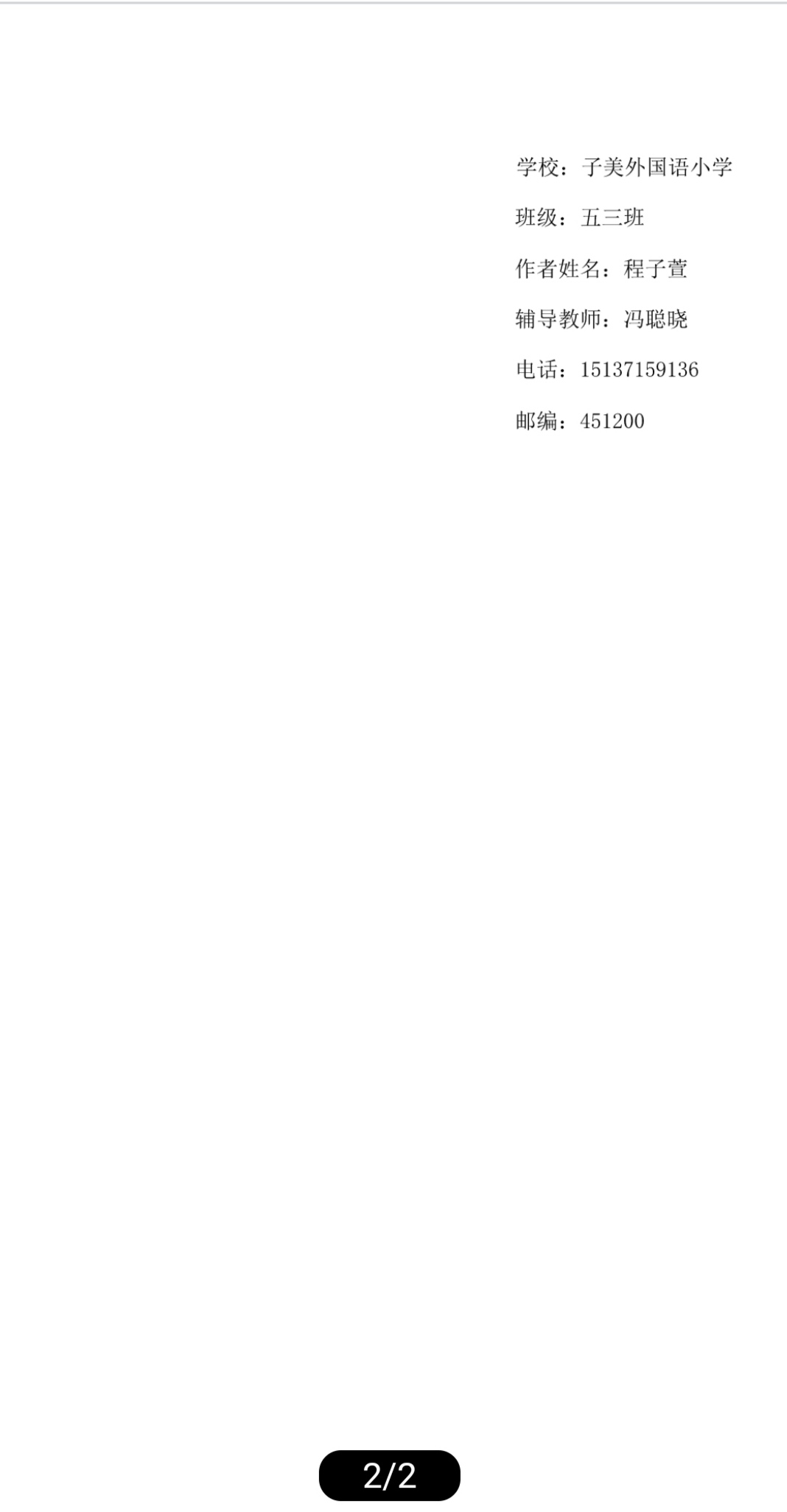 指导老师:冯聪晓 所属学校:巩义市子美小学
