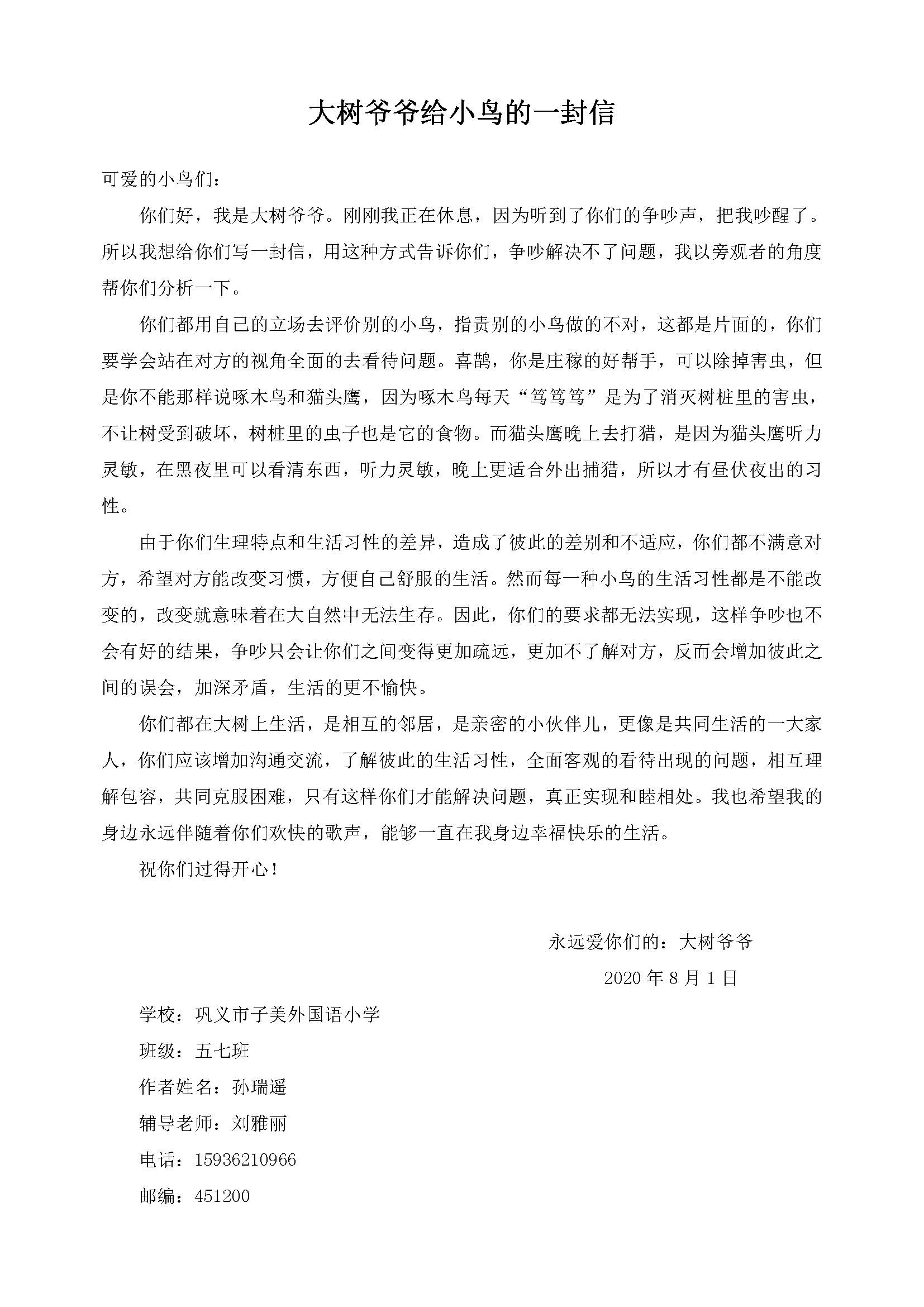大树爷爷给小鸟的一封信