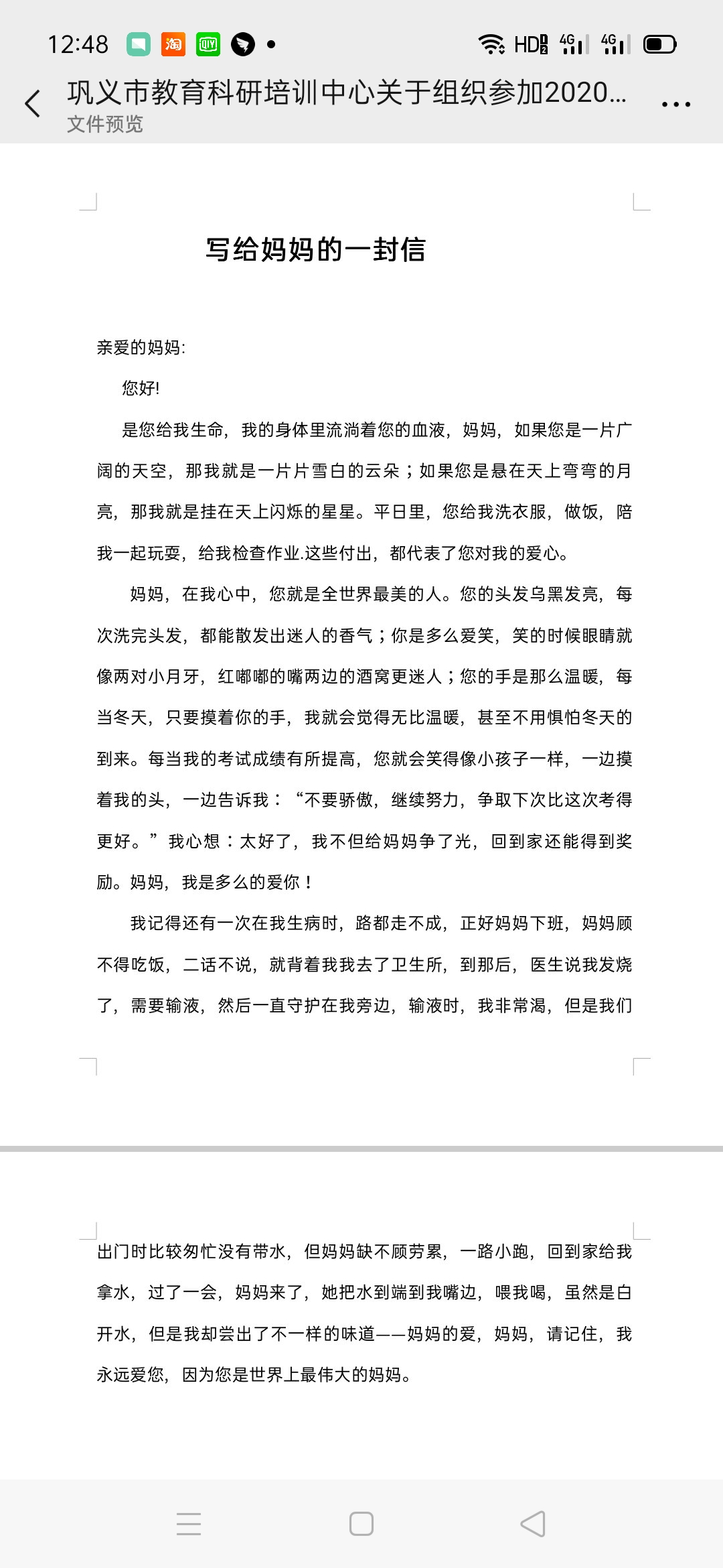 给妈妈的一封信