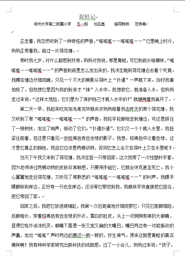 指导老师:范秀梅 所属学校:郑州大学第二附属小学