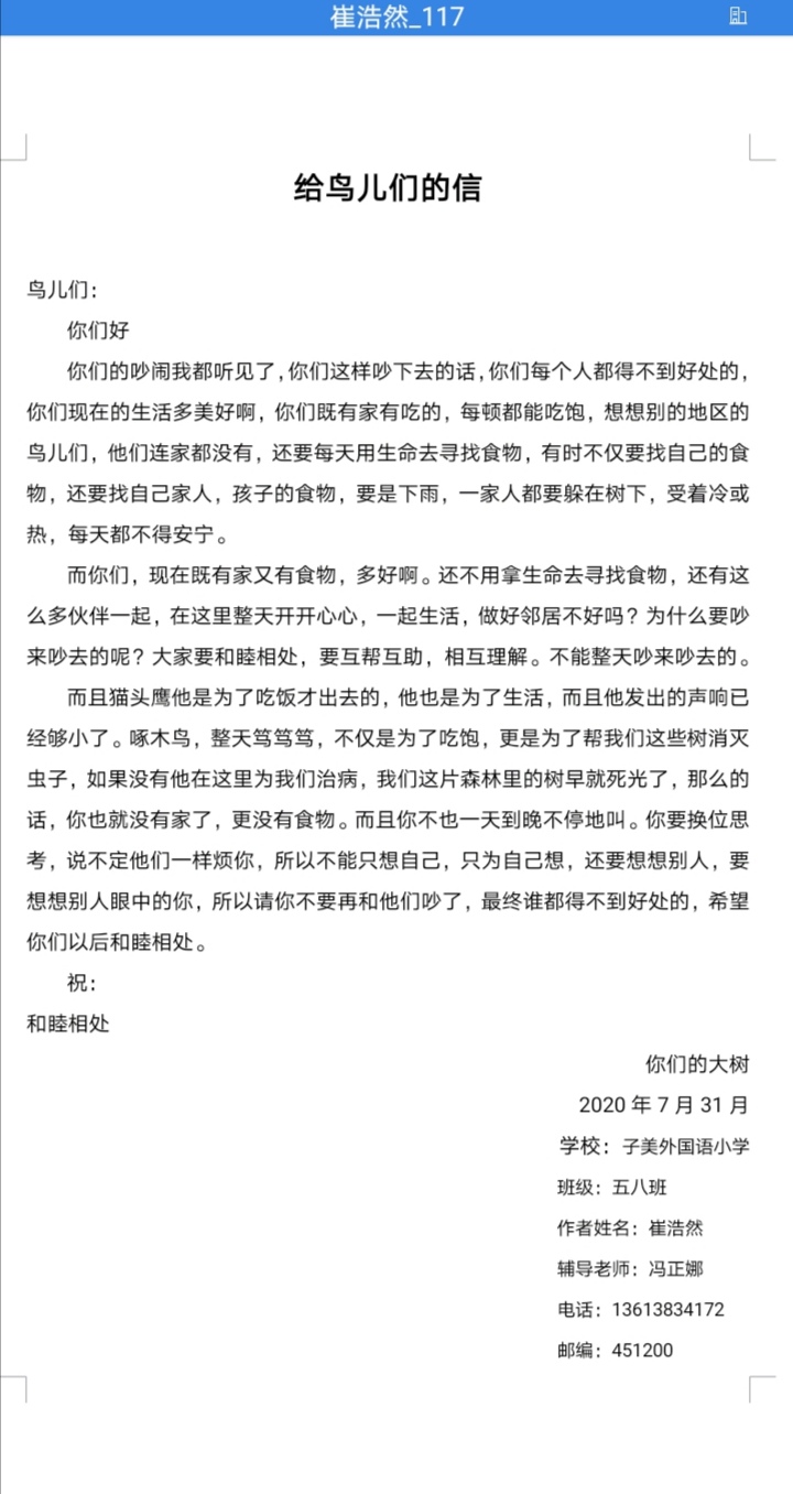 给鸟儿们的信