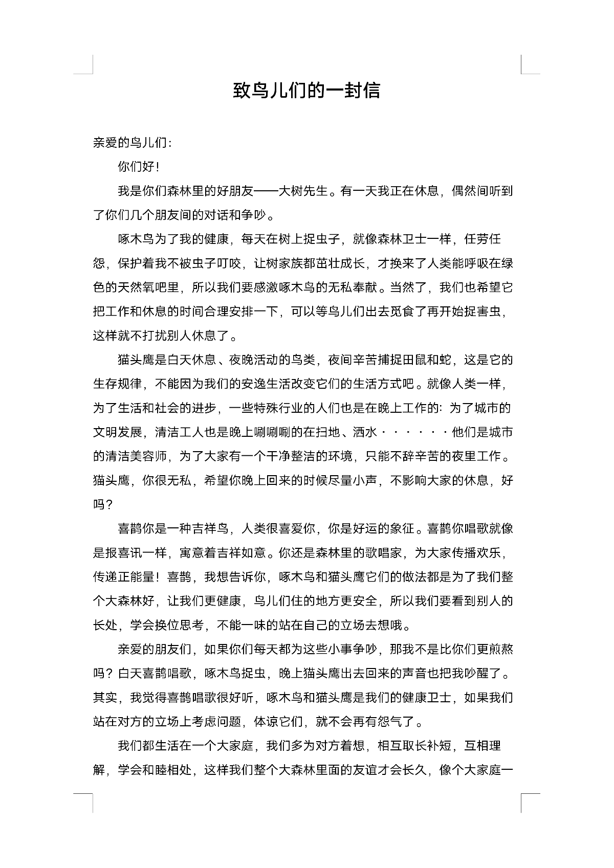 致鸟儿们的一封信