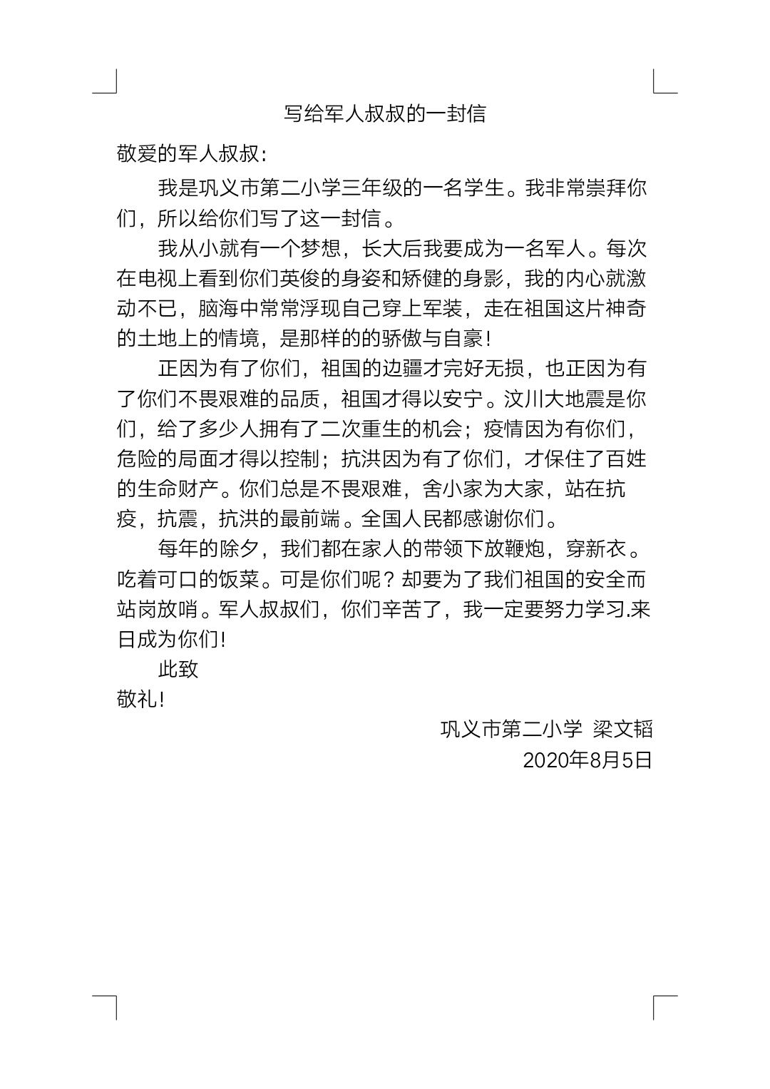 写给军人叔叔的一封信。