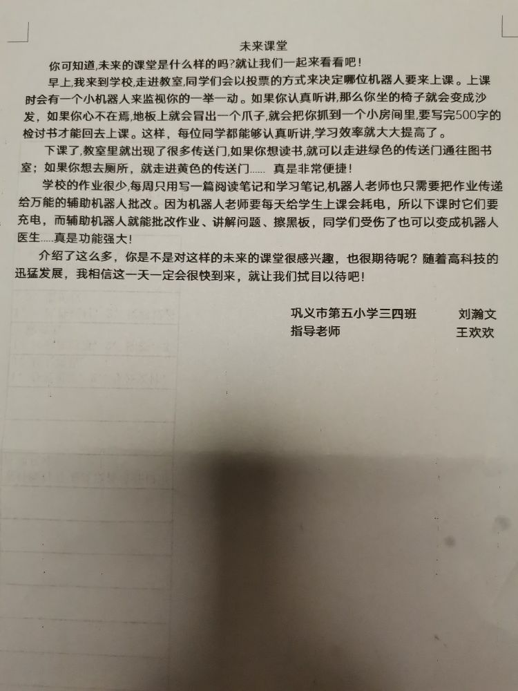 指导老师:王欢欢 所属学校:巩义市第五小学