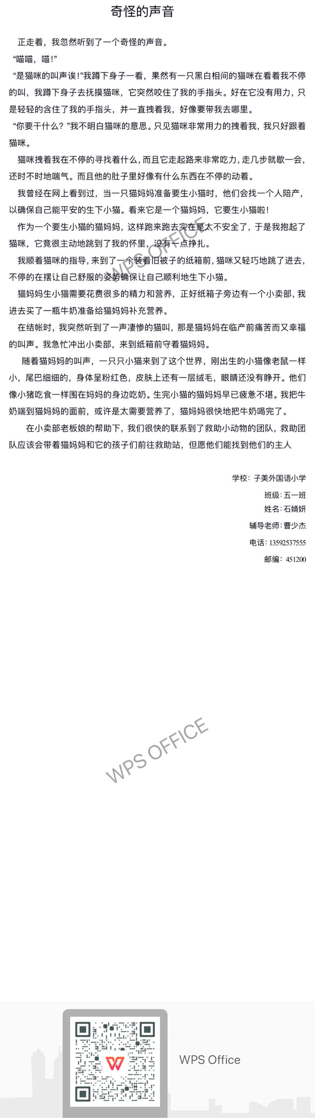 指导老师:曹少杰 所属学校:巩义市子美小学