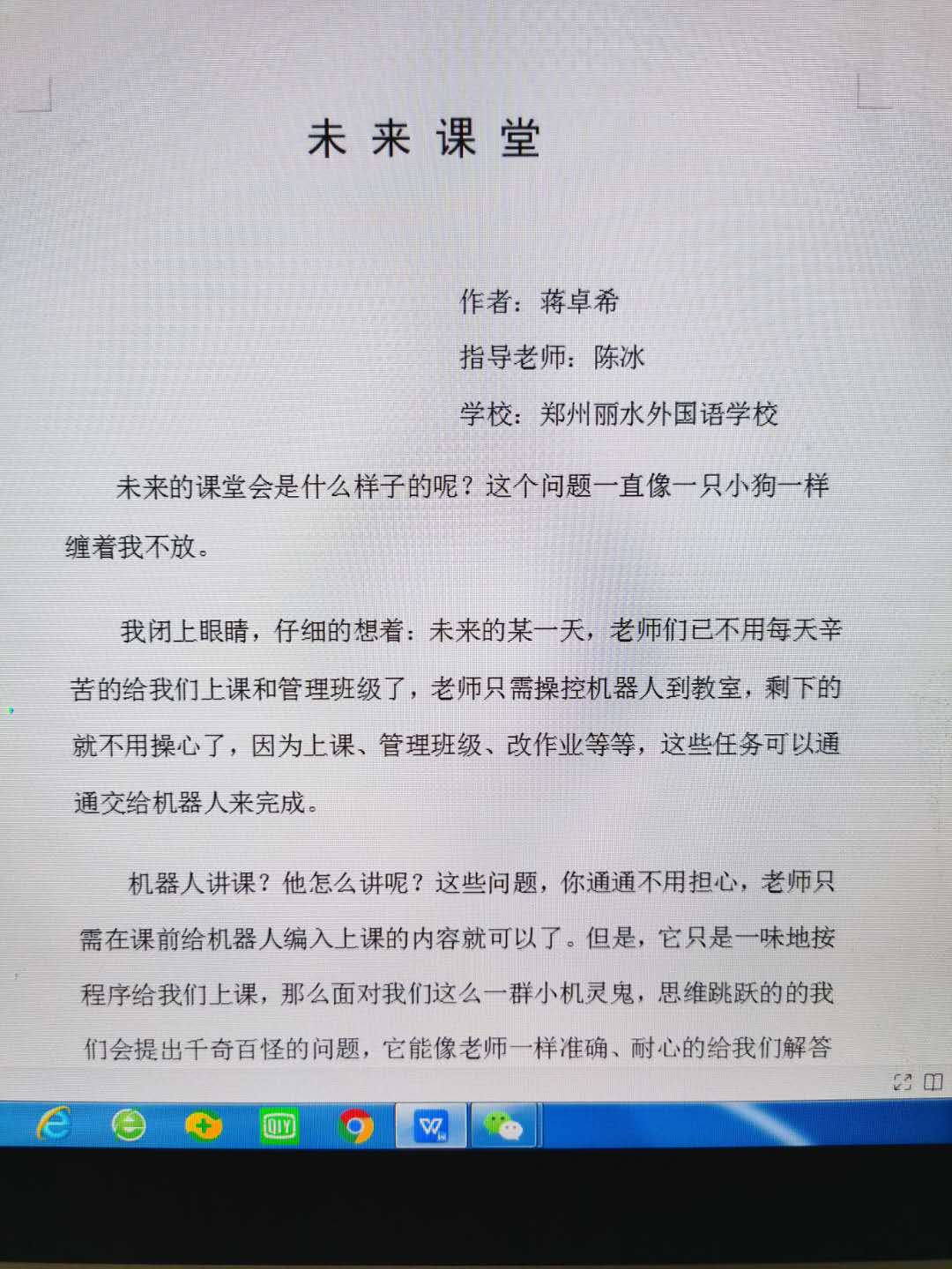 指导老师:陈冰 所属学校:郑州丽水外国语学校