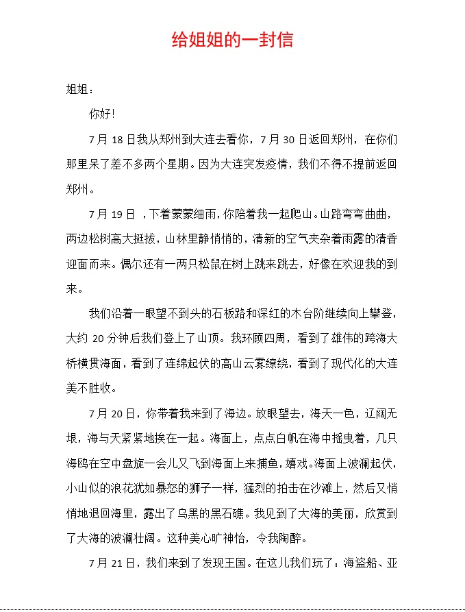 给姐姐的一封信