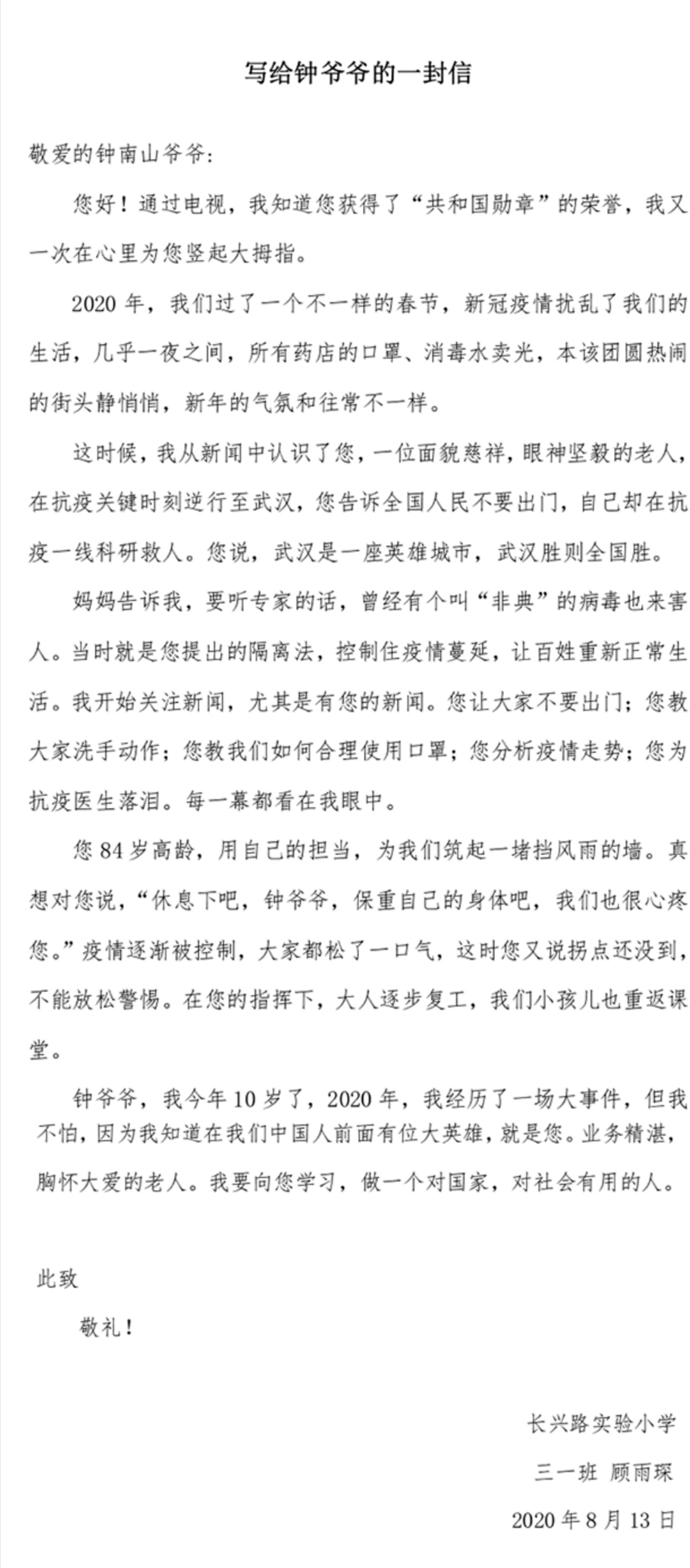 写给钟爷爷的一封信