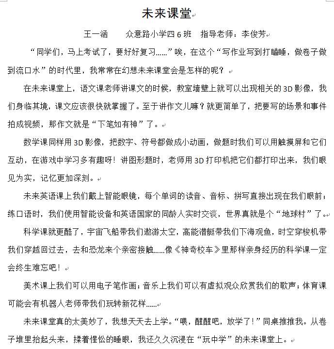 指导老师:李俊芳 所属学校:郑东新区众意路小学