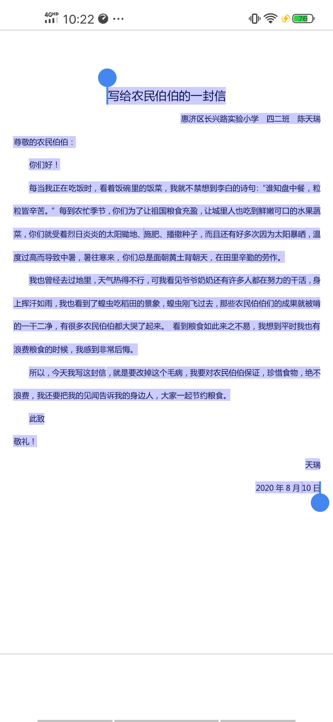 写给农民伯伯的一封信