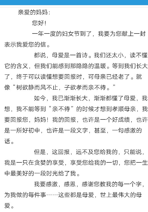 写给妈妈的一封信