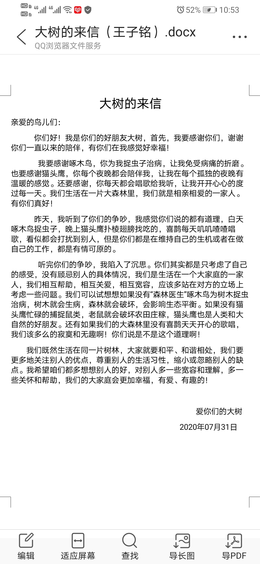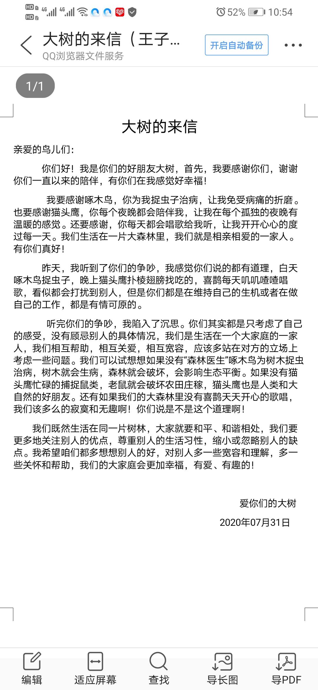 大树的来信