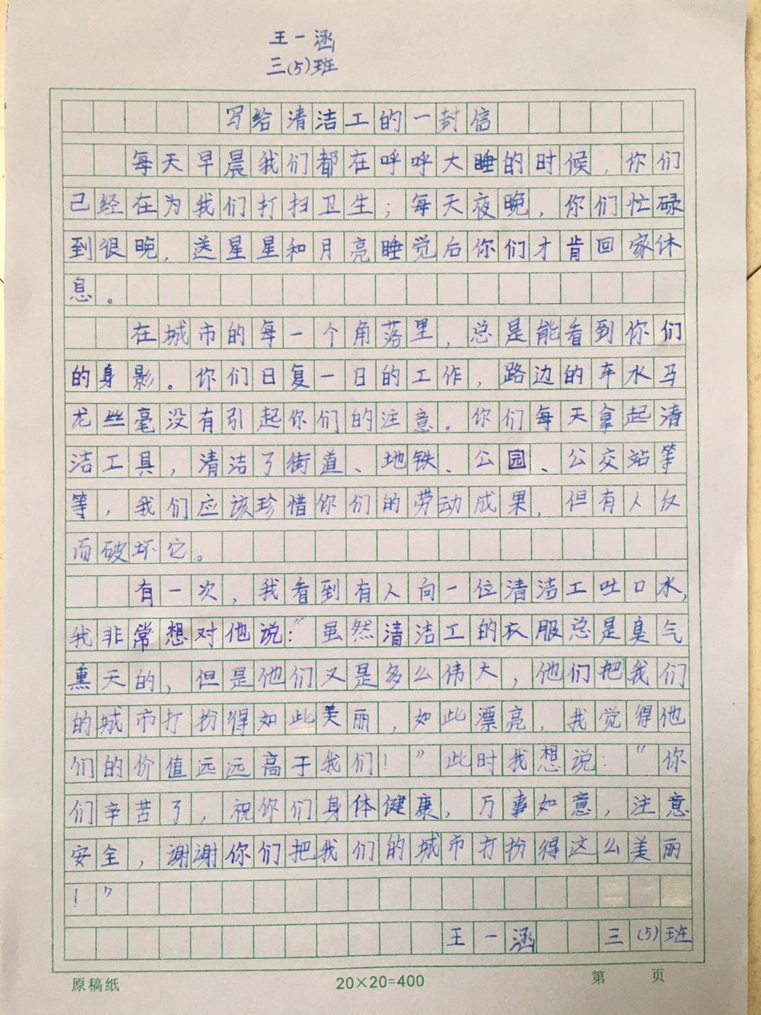 写给清洁工人的一封信
