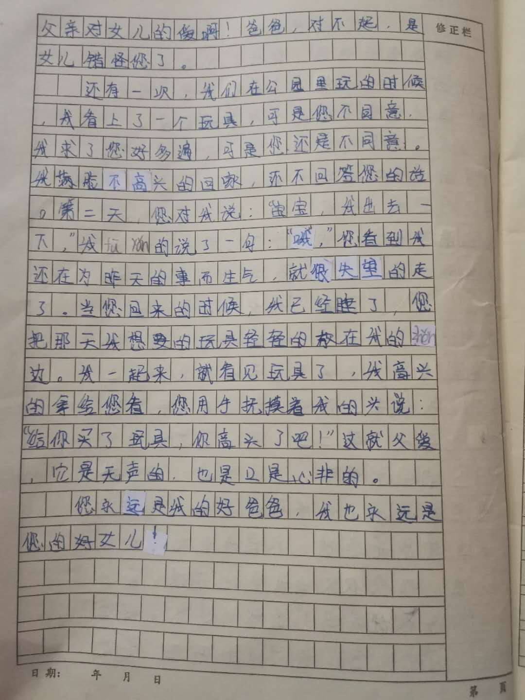 写给爸爸的一封信