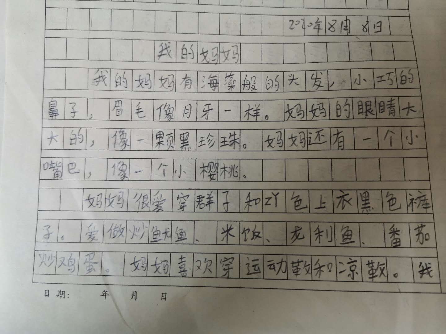 指导老师:妈妈 所属学校:二七区长江东路第三小学