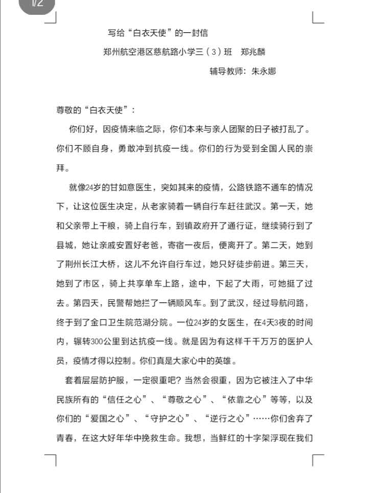 指导老师:朱永娜 所属学校:郑州航空港区慈航路小学