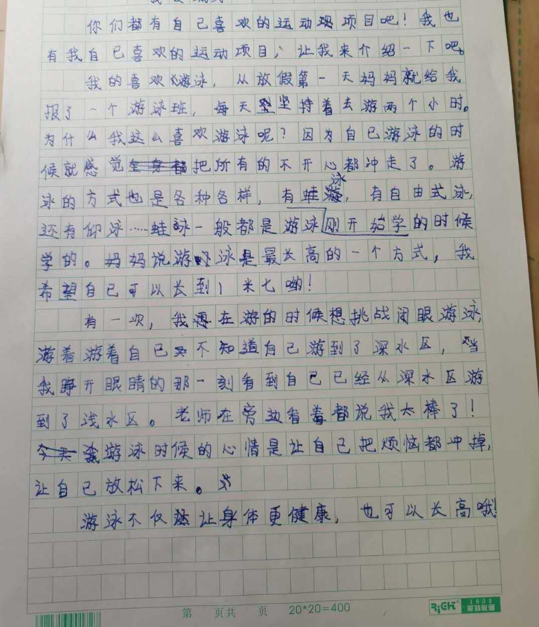 我收获了游泳健将的称号