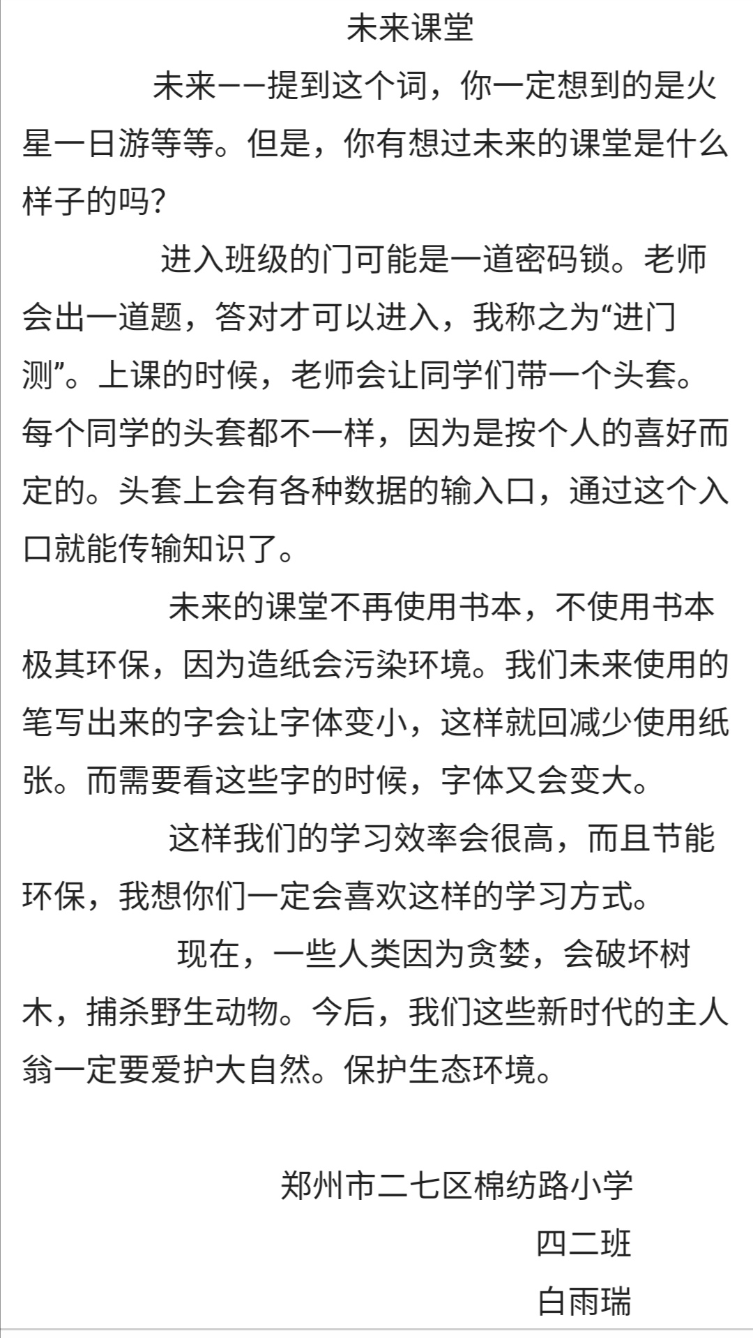 指导老师:董倩倩 所属学校:郑州市二七区棉纺路小学