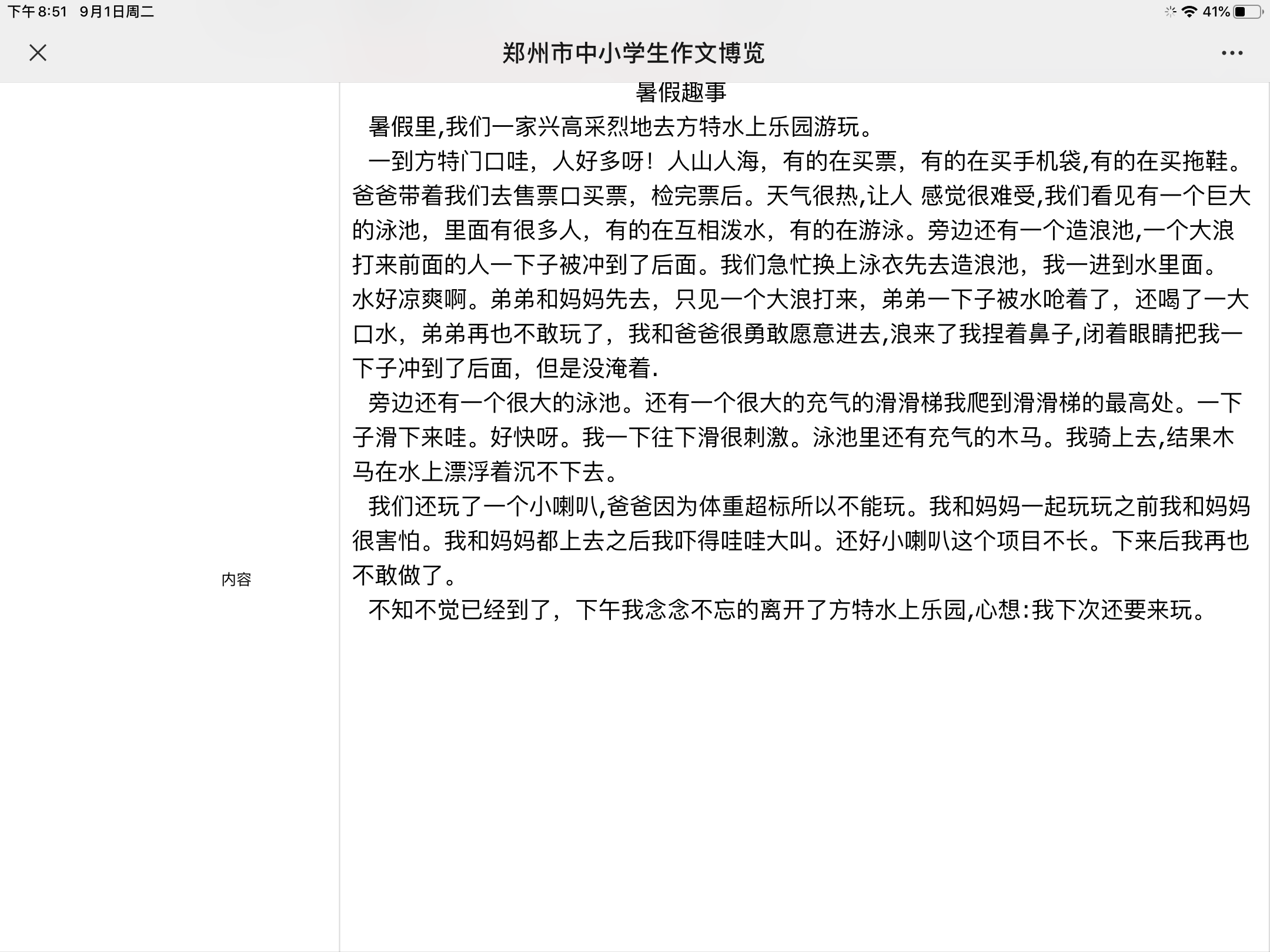 暑假趣事。