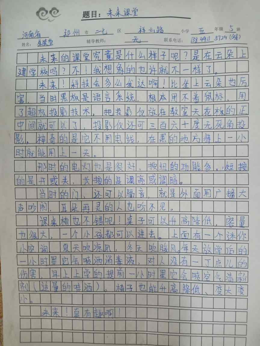 指导老师:范鑫 所属学校:二七区祥云路小学