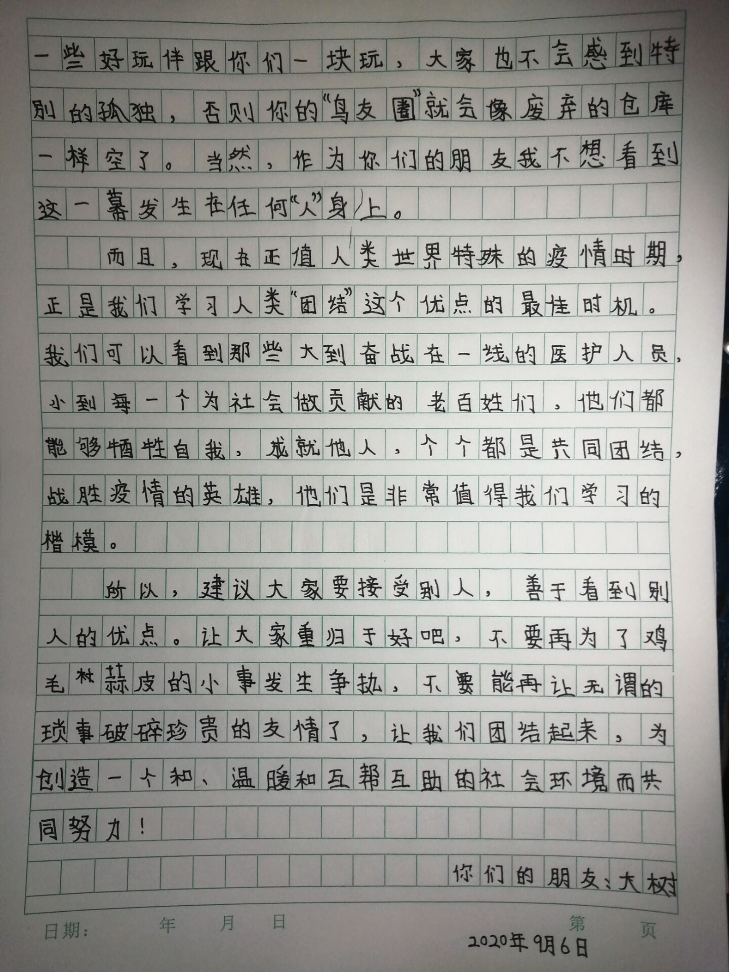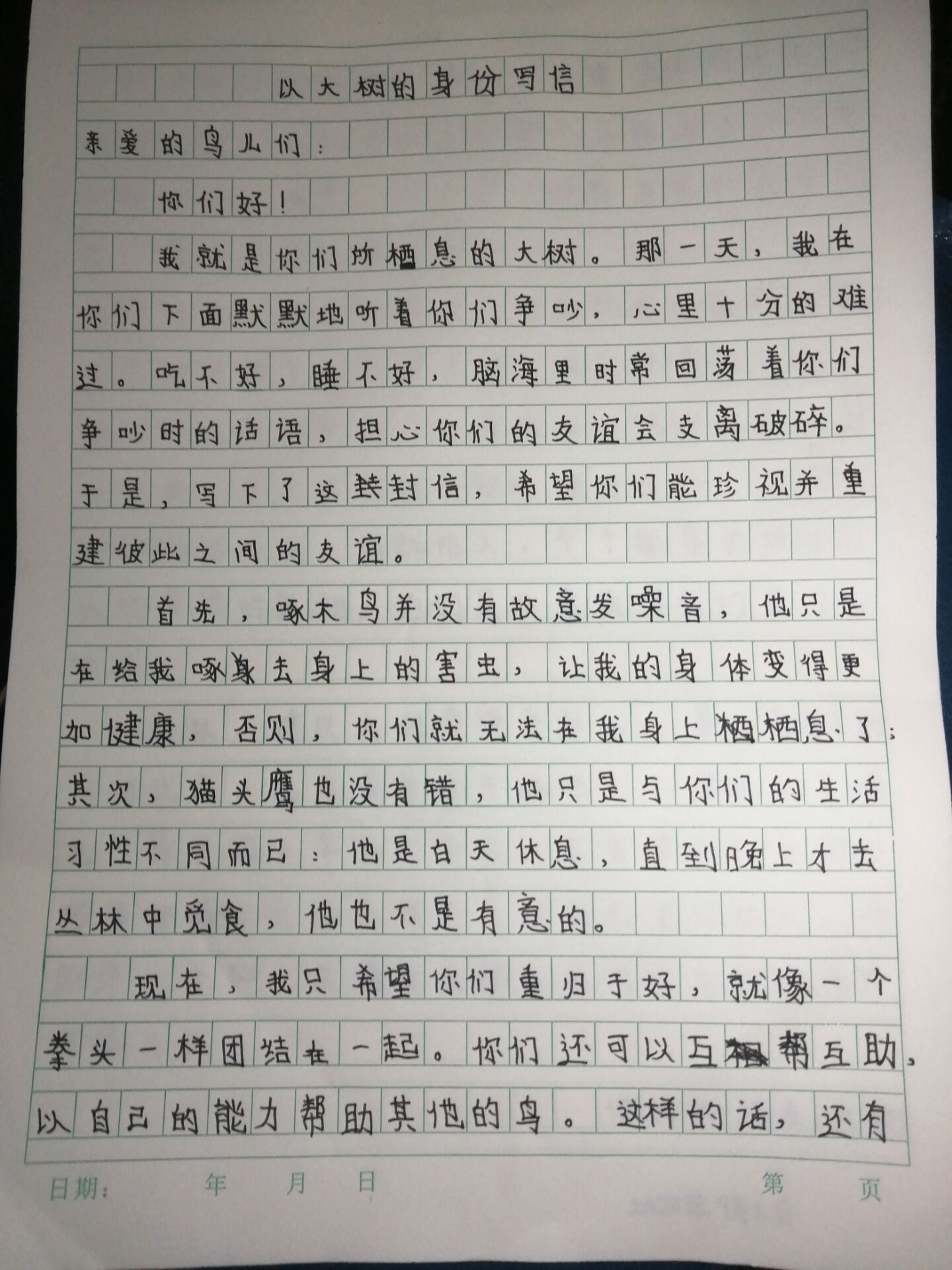以大树的身份写信