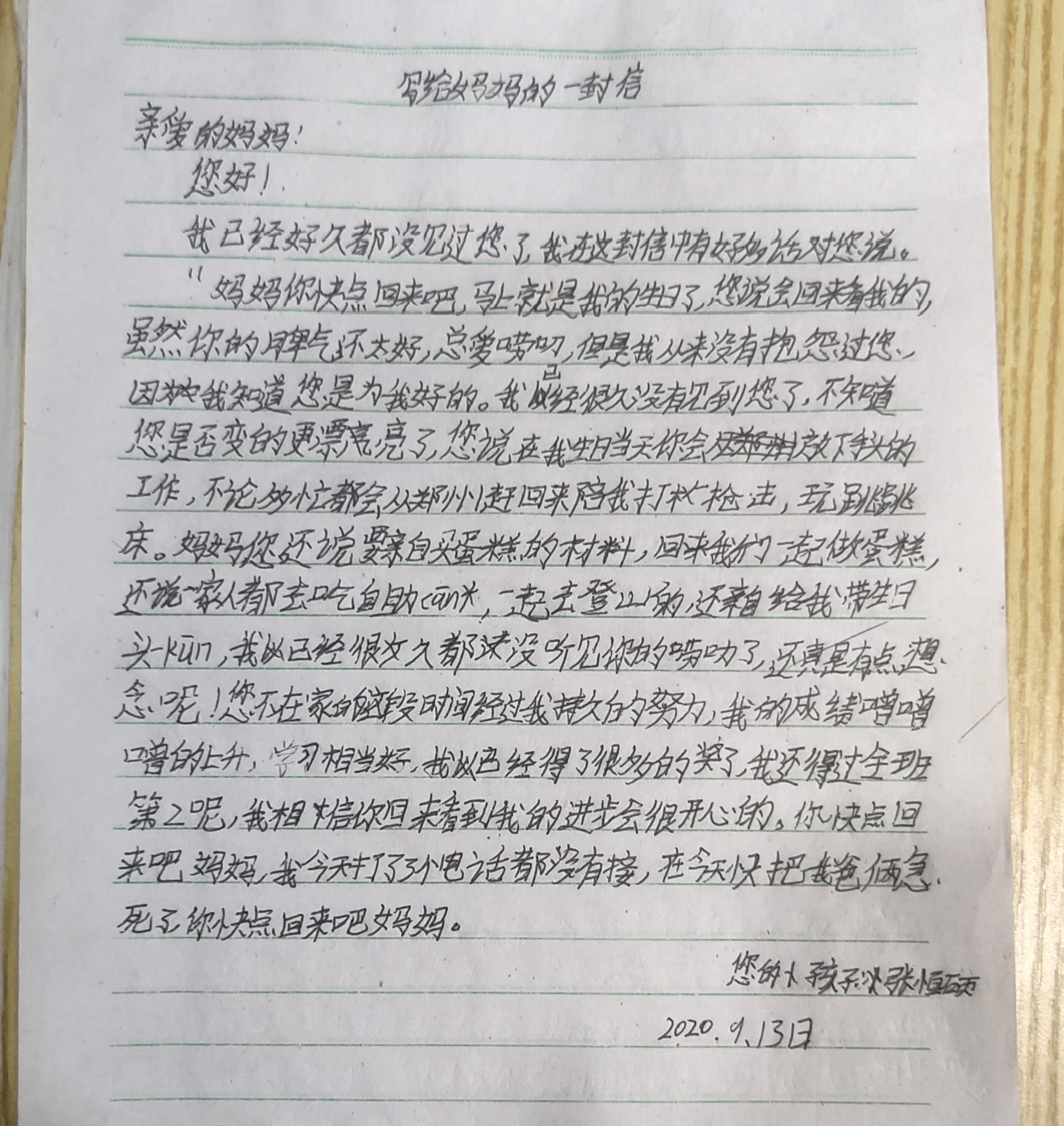 写给妈妈的一封信