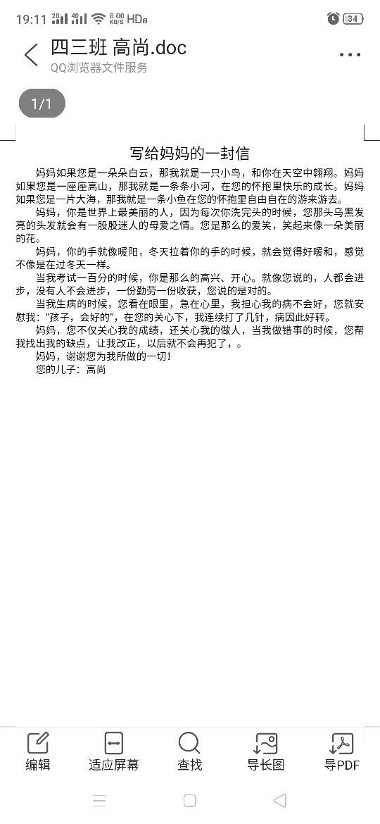 写给妈妈的一封信