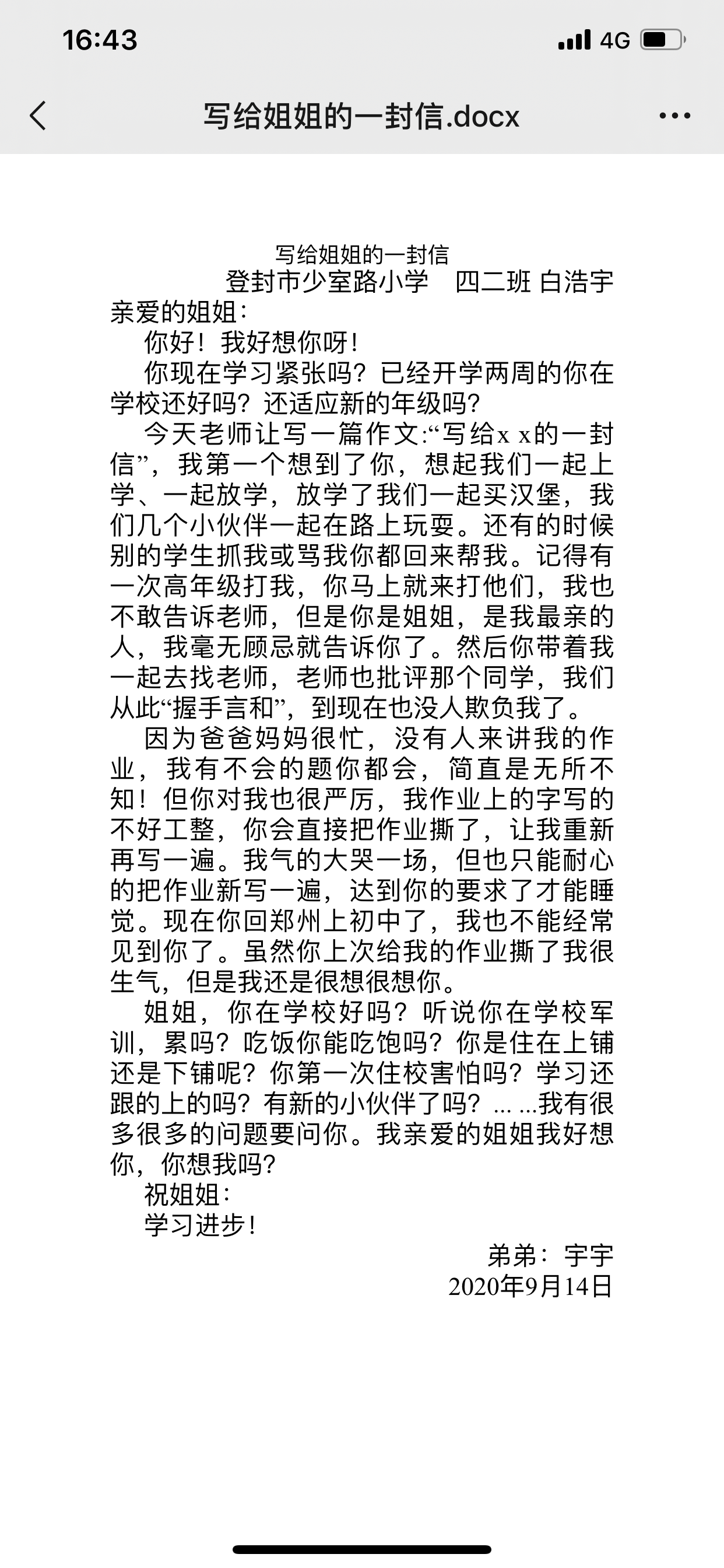 写给姐姐的一封信