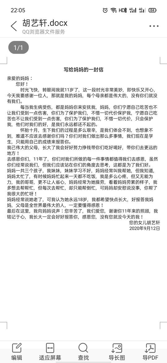 写给妈妈的一封信