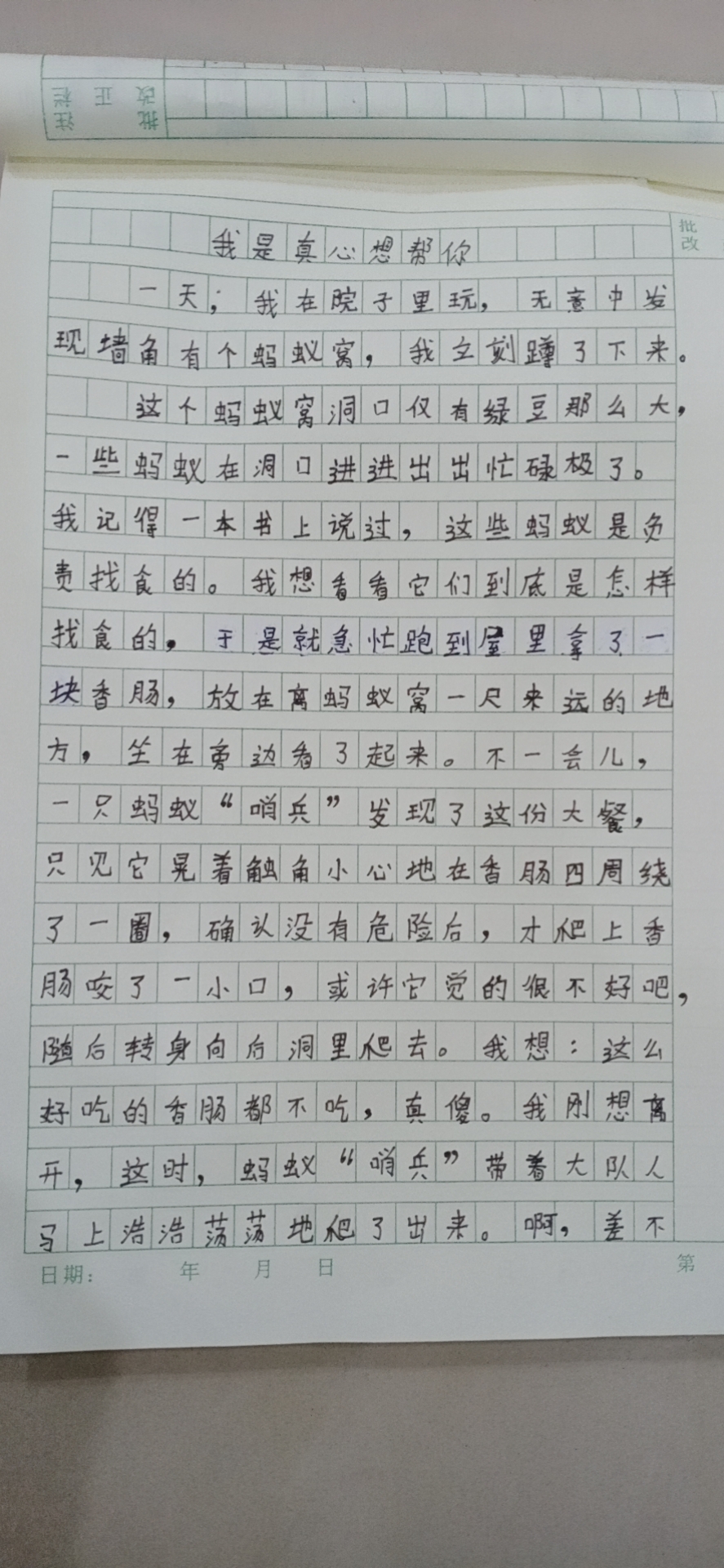 以下区域为指导老师点评区域,若您无法点评,请先核对此作文的指导老师名称与您的账户真实名称是否相同。