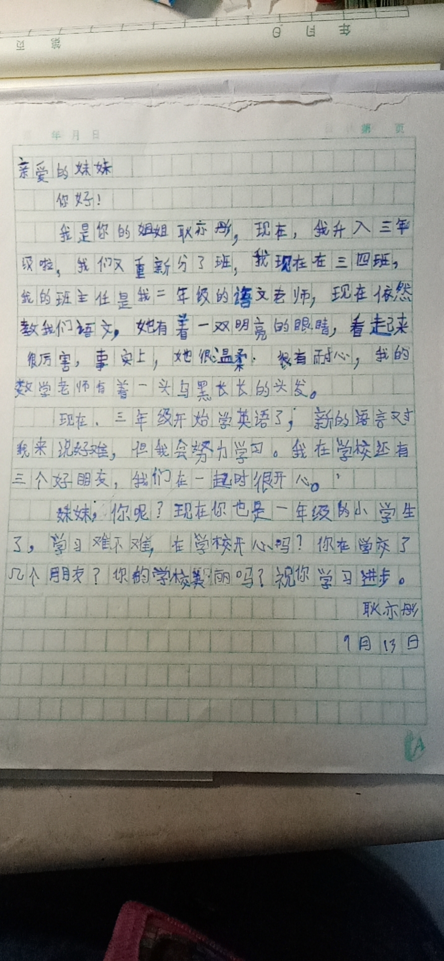 写给妹妹的一封信