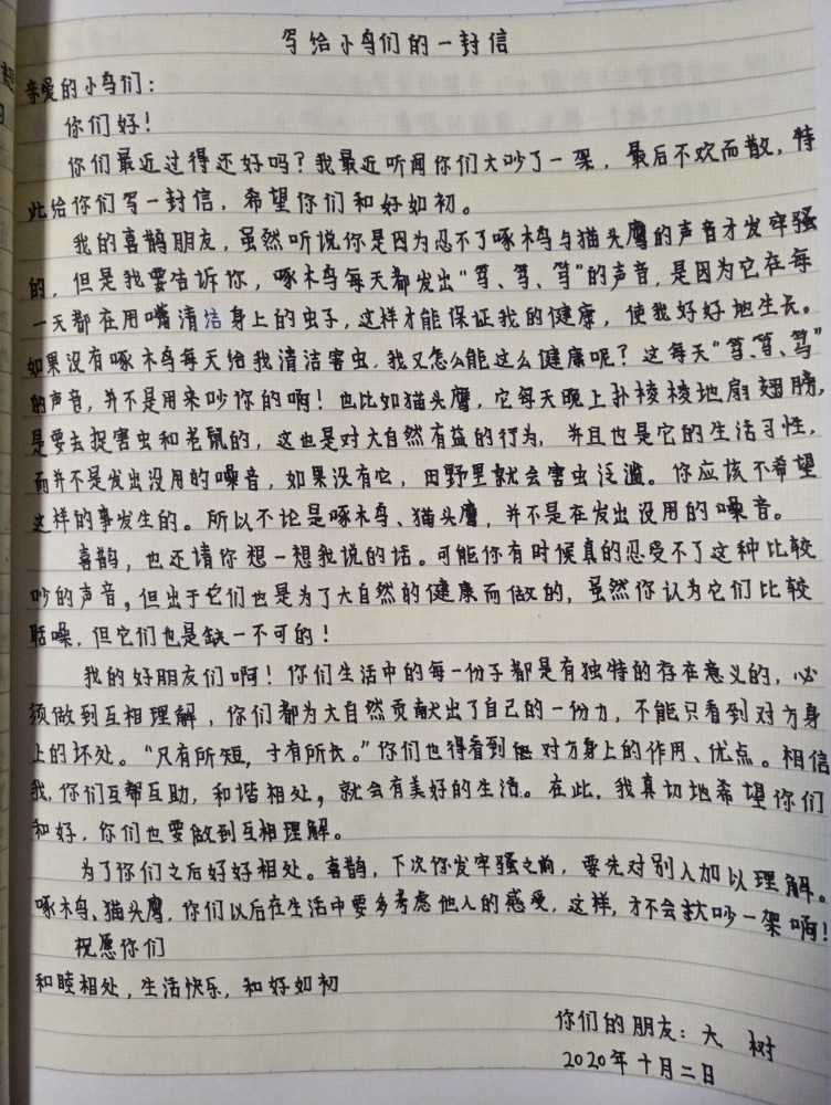 写给小鸟朋友们的一封信