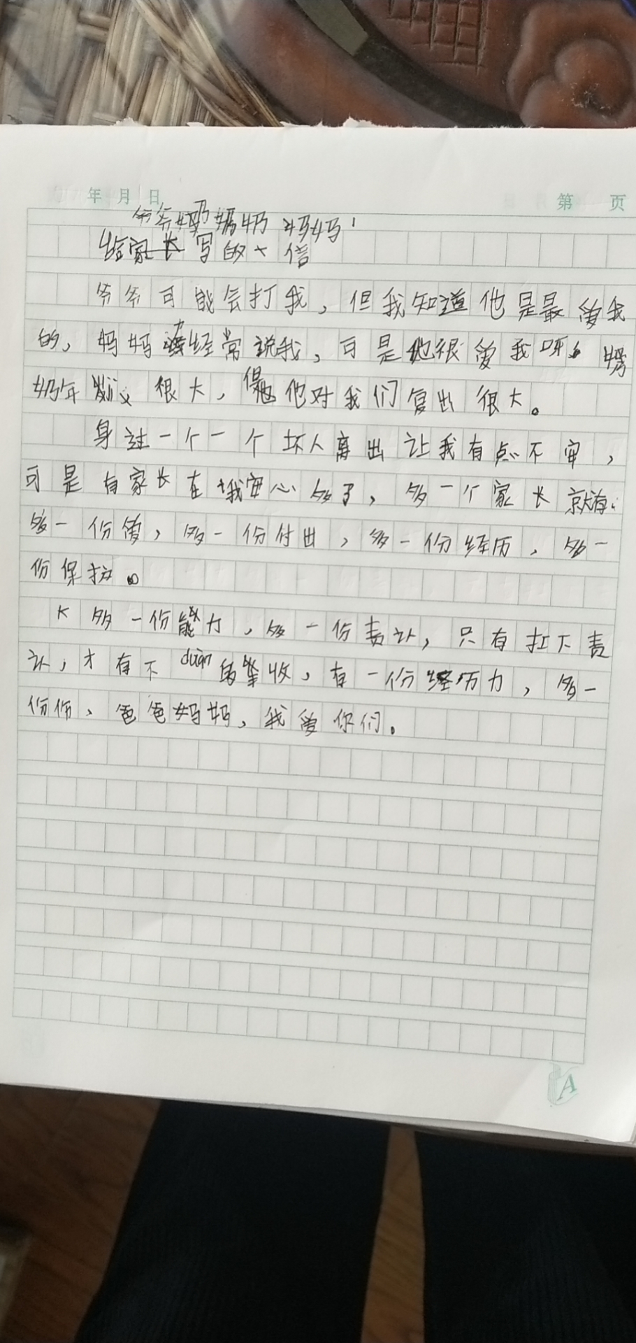 写给爸爸妈妈的一封信
