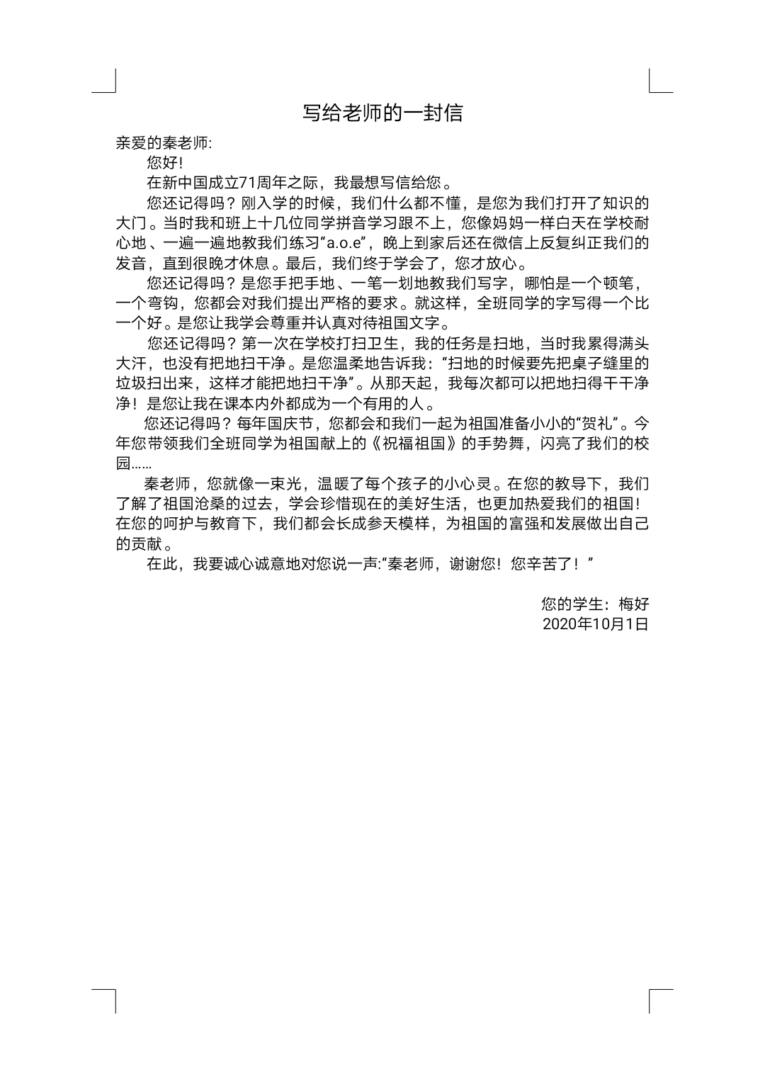 写给老师的一封信