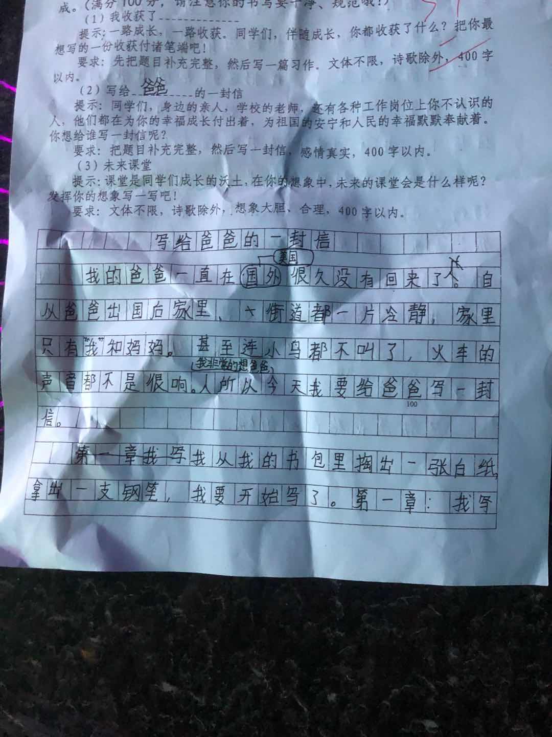 写给爸爸的一封信