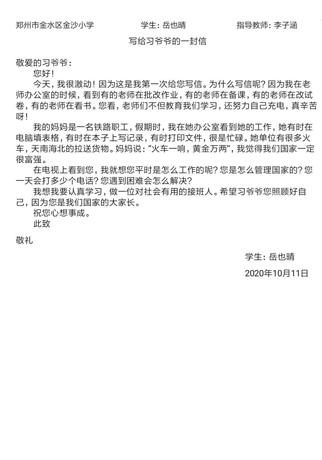 指导老师:李子涵 所属学校:金水区金沙小学