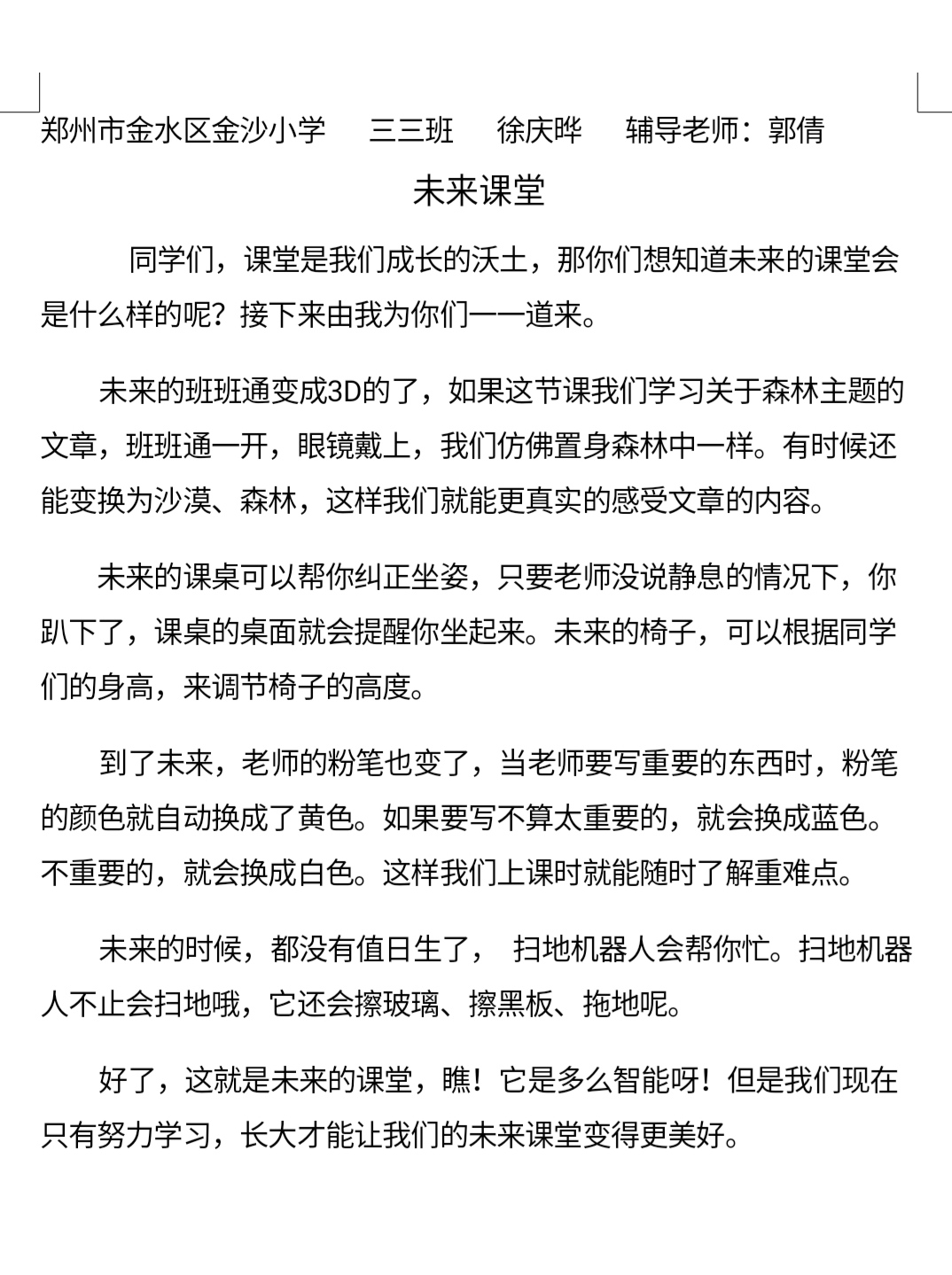 指导老师:郭倩 所属学校:金水区金沙小学