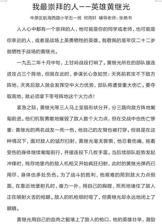我最崇拜的人——英雄黄继光