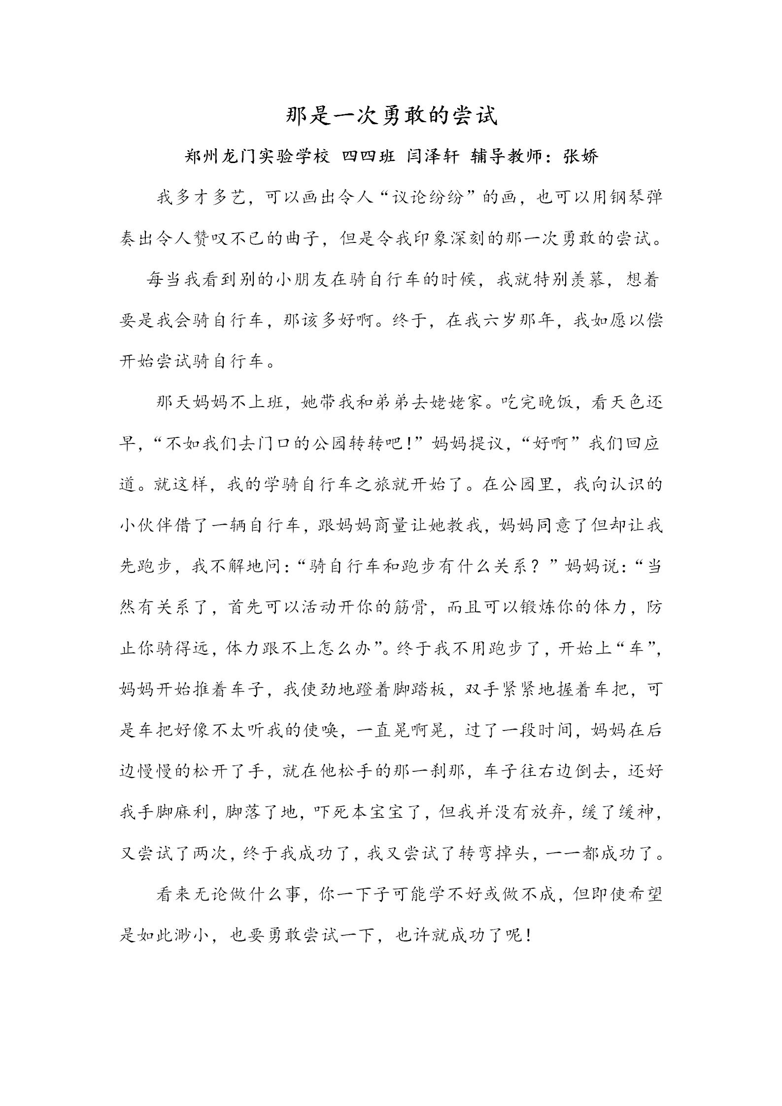 指导老师:张娇 所属学校:郑州金水区龙门实验学校