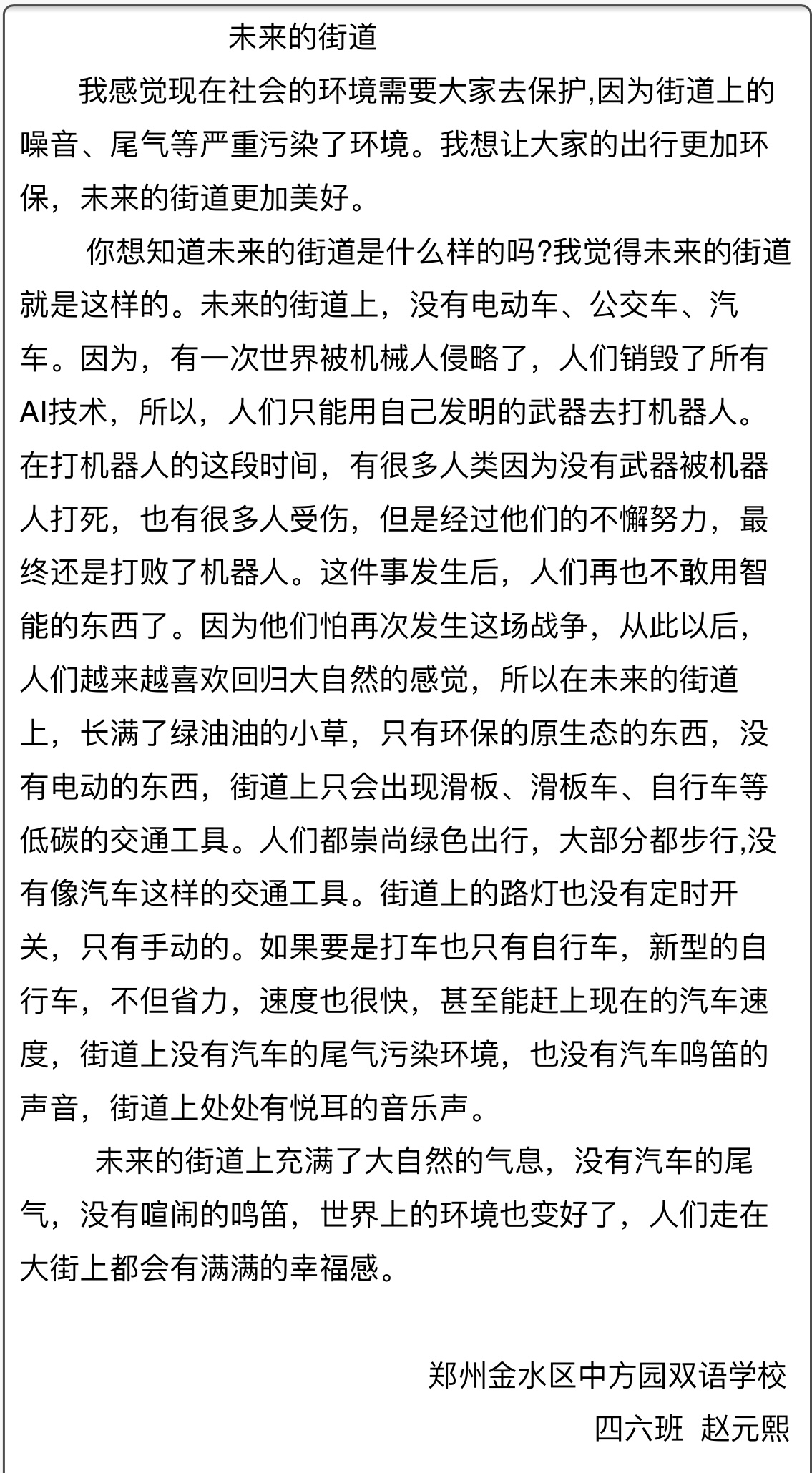 指导老师:刘巧珍 所属学校:金水区中方园双语学校