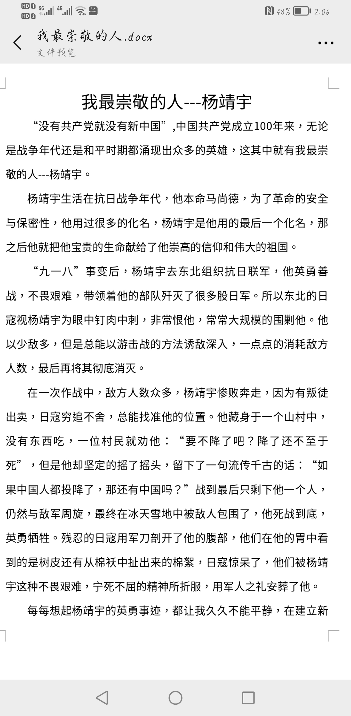 我最崇敬的人---杨靖宇