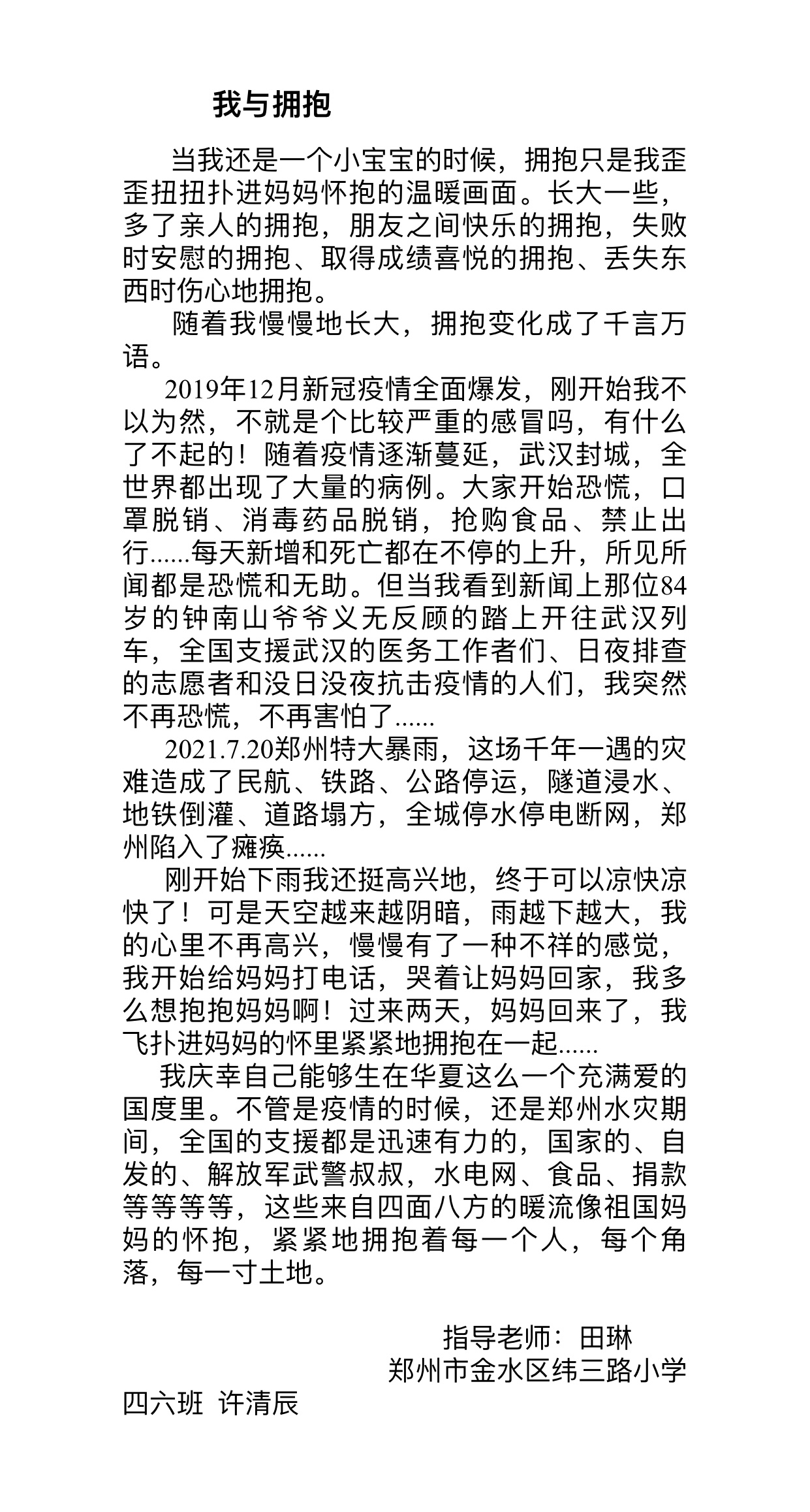 指导老师:田琳 所属学校:金水区纬三路小学