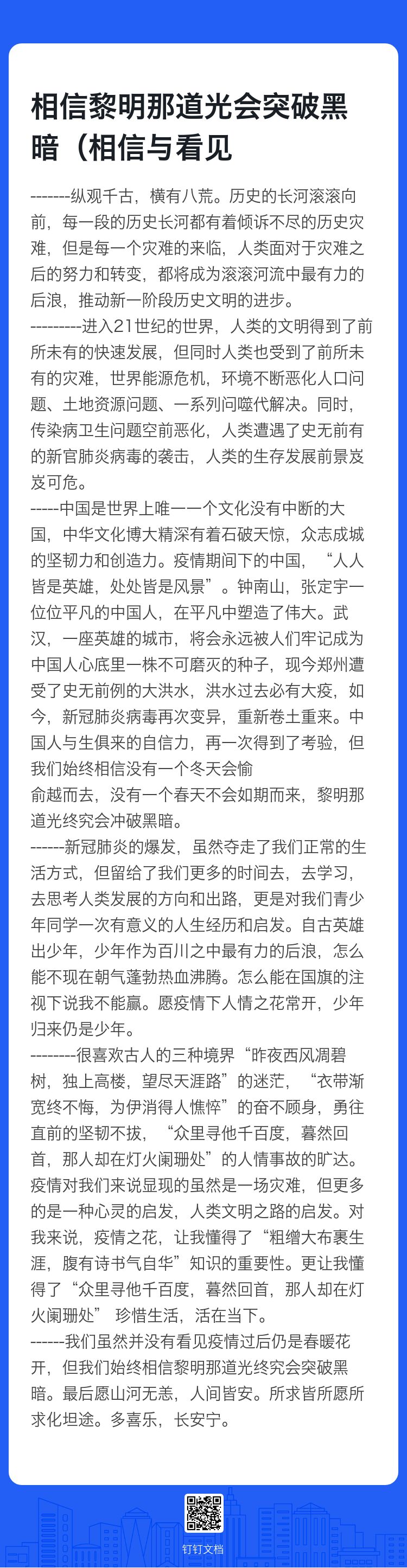 相信黎明那道光会突破黑暗